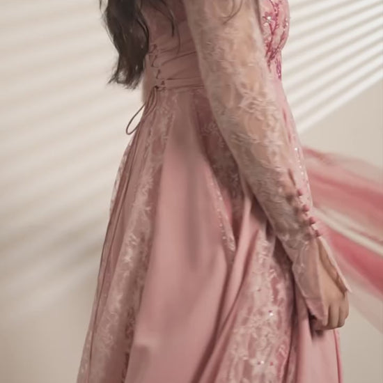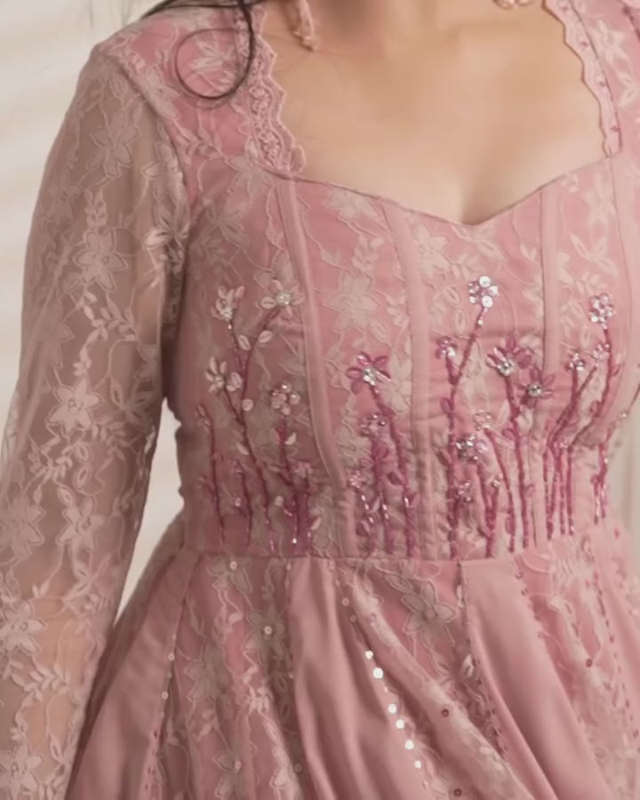 DESCRIPTION-🎀A beautiful amagaltion of lace georgette and tulle fabric🎀Trendy corset design 🎀Dainty hand embroidery all over🎀Custom stitching available