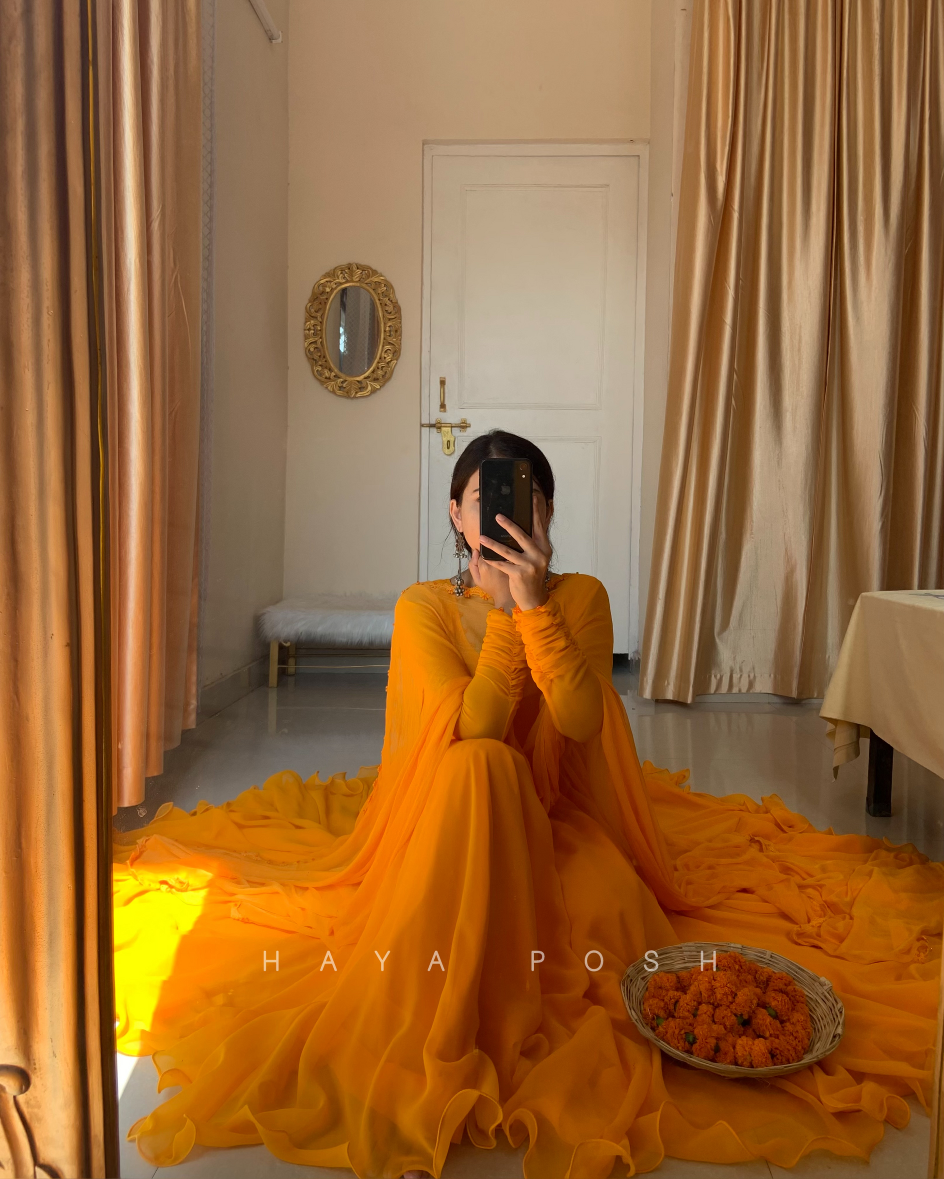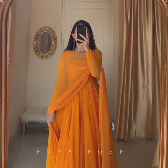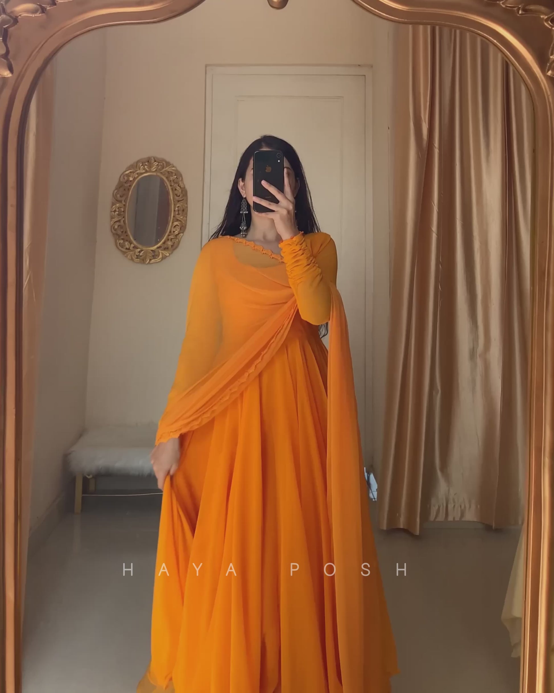 🌻3 piece set🌻Colour: Mustard yellow🌻Neckline and sleeve is embellished with intricate crystals.🌻Elasticated sleeves for better fit🌻soft, luxurious fabric offering both comfort and sophistication.🌻Flare ~26m